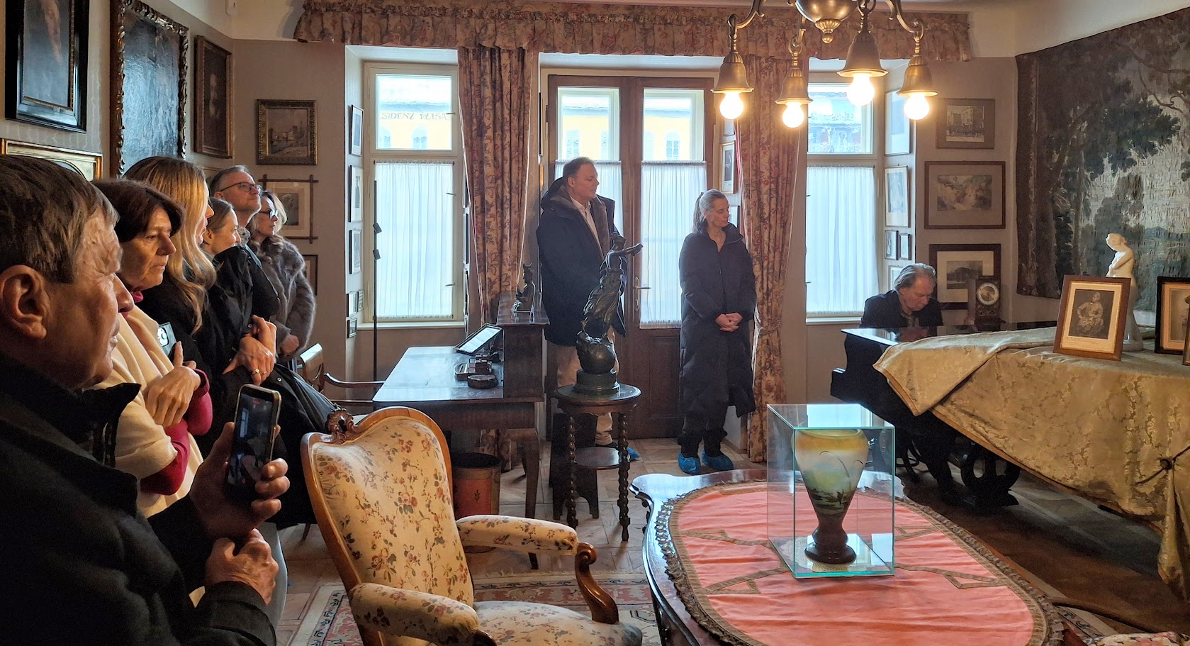 Restlose Begeisterung zeigten die Besucher*innen bei der sonntäglichen Matinée in der Lehárvilla. Beschwingt mit einem Glas Sekt gestimmt, begann eine vertiefende Führung durch die Villa. In Lehárs beiden Arbeitszimmern erklangen seine weltberühmten Operettenmelodien, gespielt auf den Klavieren, auf denen sie auch komponiert wurden. Ein exklusives Erlebnis für jeweils maximal 15 Gäste, das jeden zweiten Sonntag im Monat stattfindet.